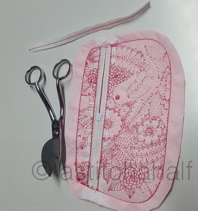 Cut a 1” seam allowance once the embroidery is removed from the hoop.