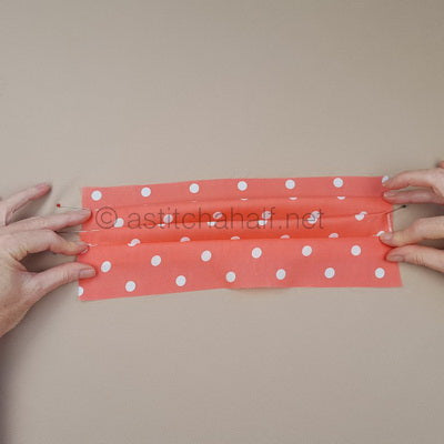 Iron bias tape flat and cut the ends. Divide each strip in half and mark with a pin. (23” strips x 2)