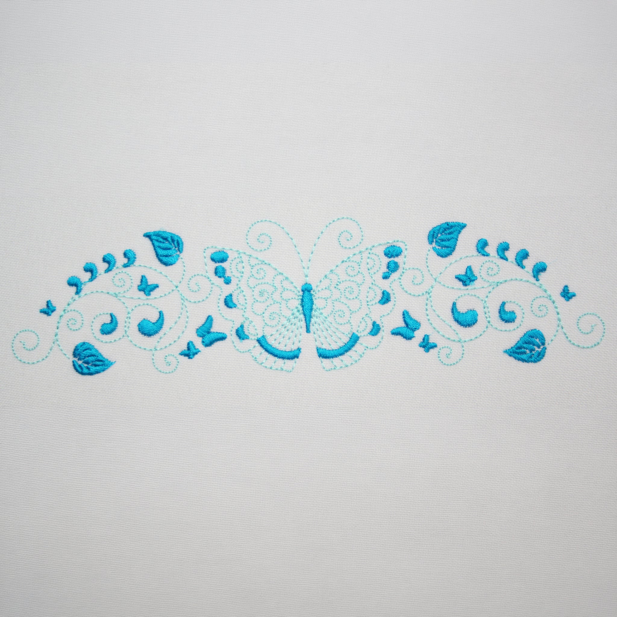 Embroider these 2-tone butterflies to create a quick and easy yet exquisite looking gift like edging along a table cloth, napkin, skirt border or blouse pocket.