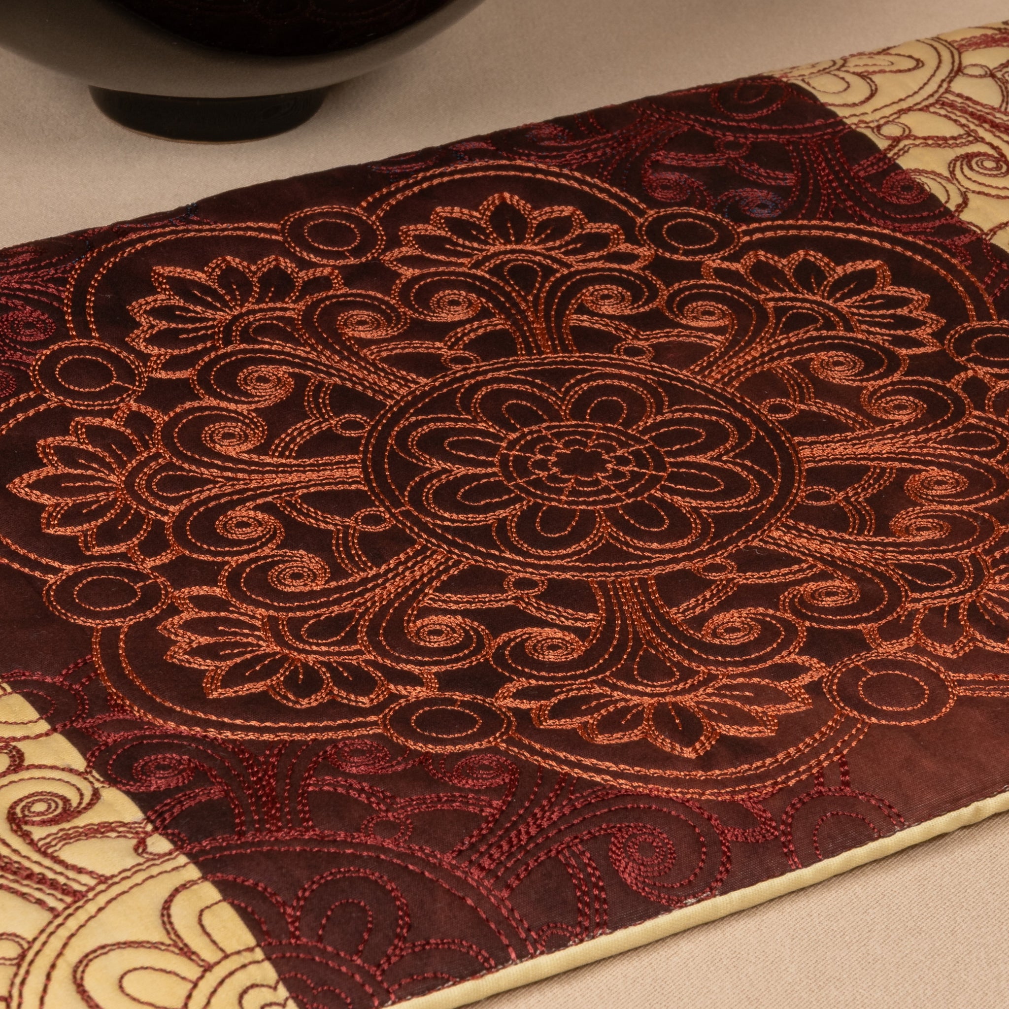 Copper Glow brings the warm beauty of copper into your home with designs that shine with rich, golden tones. This lovely collection is perfect for creating special pieces—from a beautiful table runner for family dinners, to pretty tea towels that brighten your kitchen, or cozy pillow covers that make any room feel more welcoming.