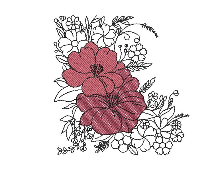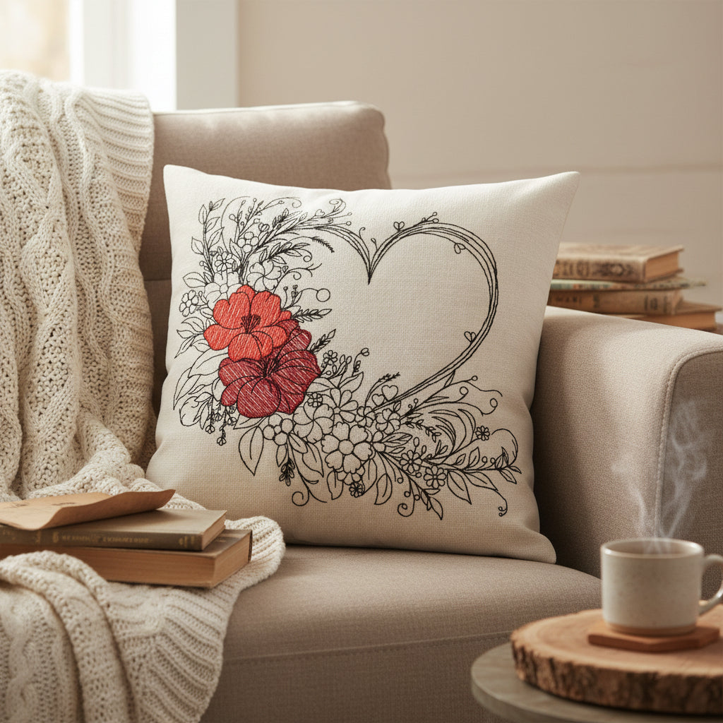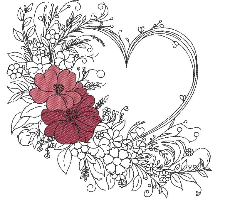 Heartwood Blooms captures nature's gentle beauty with delicate flowers and organic twigs gracefully intertwined around a timeless heart shape. This enchanting machine embroidery design brings warmth and natural elegance to any project, perfect for adding a touch of botanical charm to linens, apparel, and home décor.