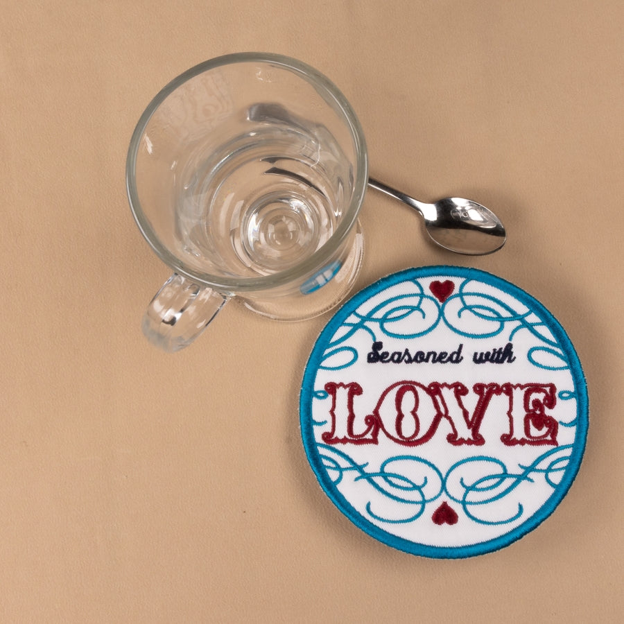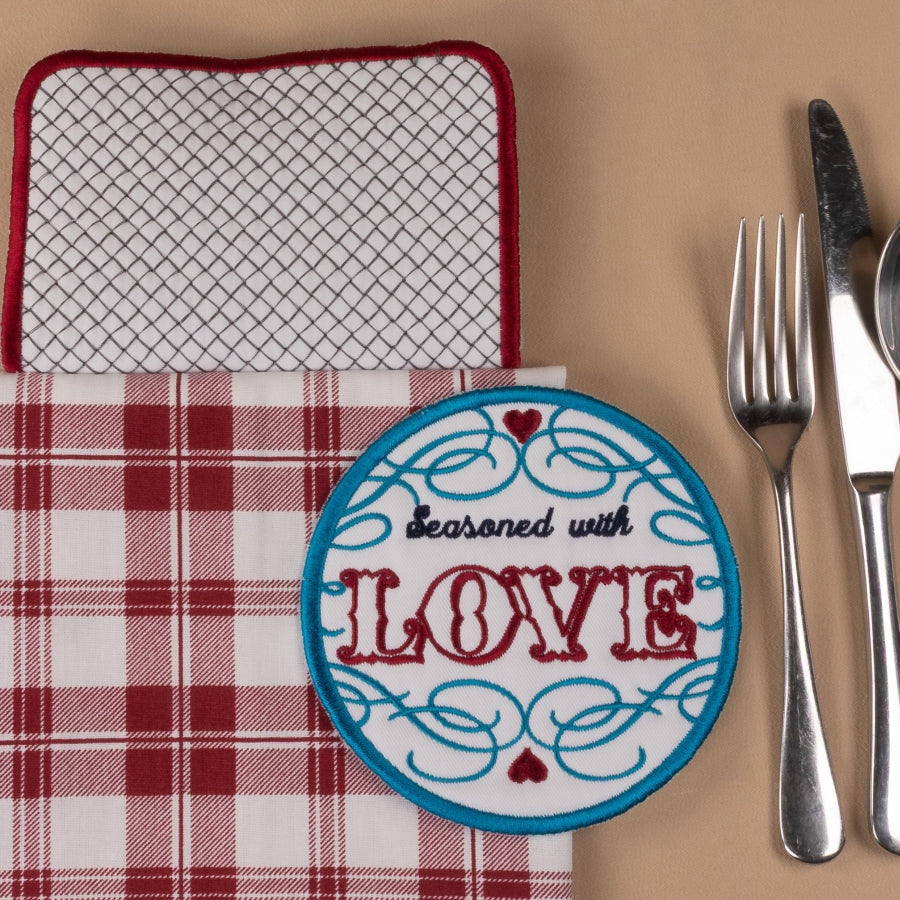 Uses: All In The Hoop Hanging Pot Holder Tea Towel x 6, All In The Hoop Coaster, embroidery designs to use on Tea Towels, Aprons, Placemats and more.