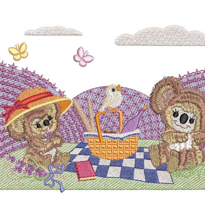 Fuzzy Oliver and Olivia are having a picnic in the lavender fields of La Province, France. The wine is good, the flowers look and smell so lovely and the feeling is oh so laid back!!. Viva la France...