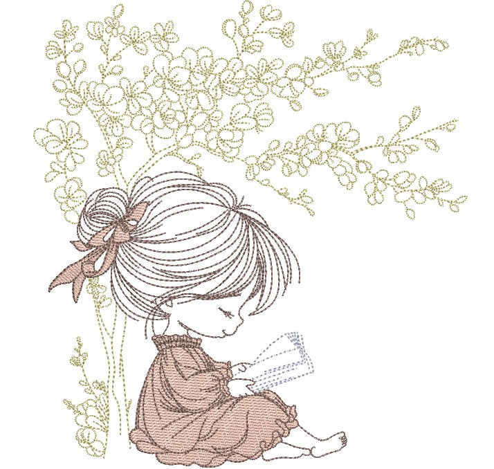 A quiet reader sheltered under cherry blossoms, immersed in tales as soft petals drift through her hair. Stitch the March child for a cherished bookworm or to weave warmth and wonder into your home.πΈ Settle in with your machine and watch the beauty unfold.