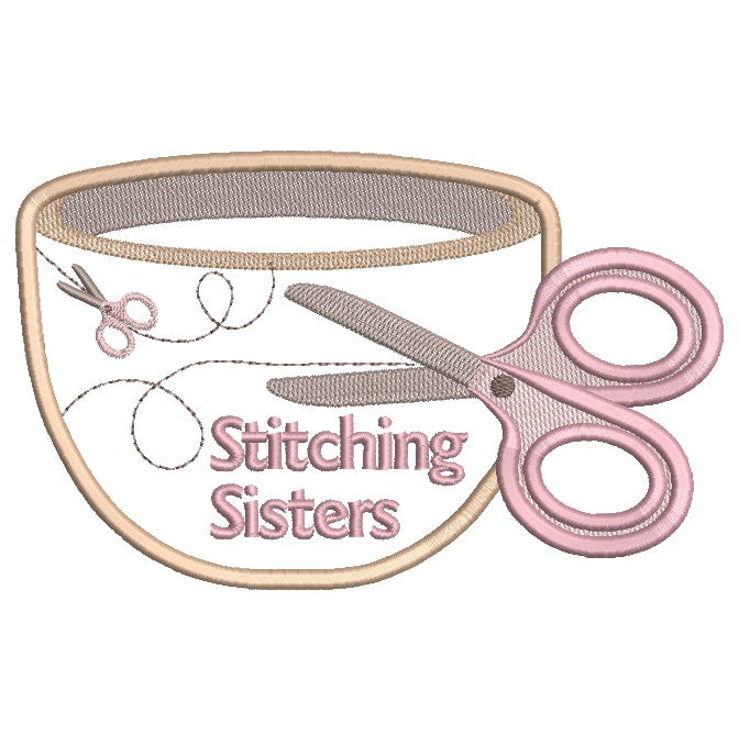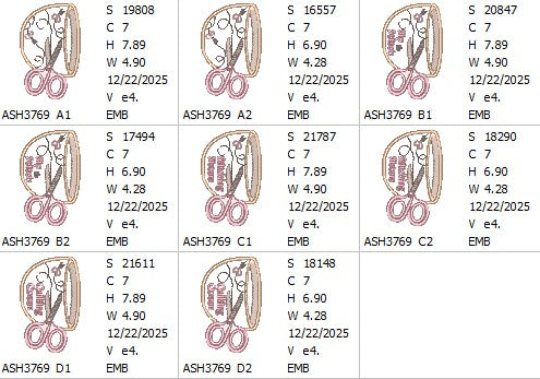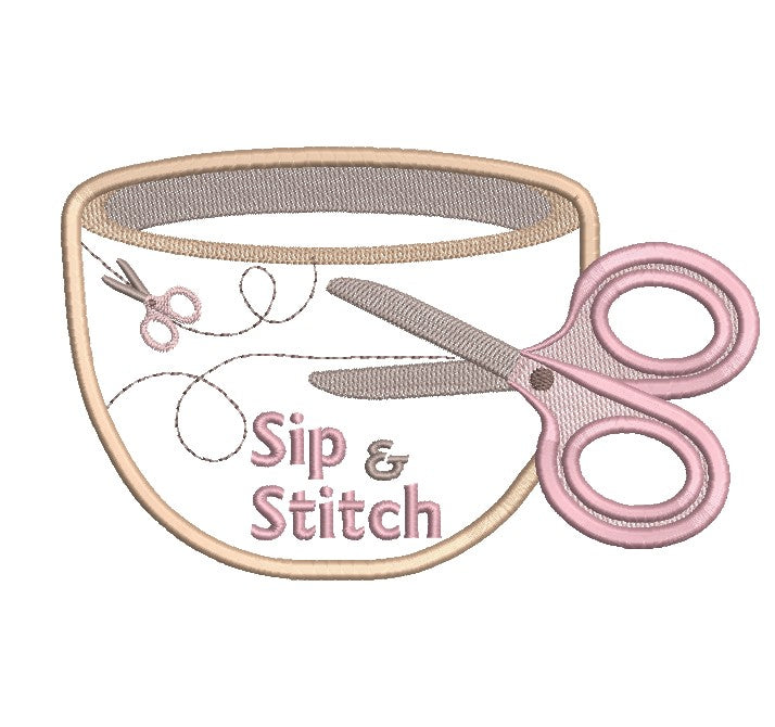 Sayings include: 1. Stitching Sisters 2. Sip & Stitch 3. Quilting Queen 4. Scissors only
