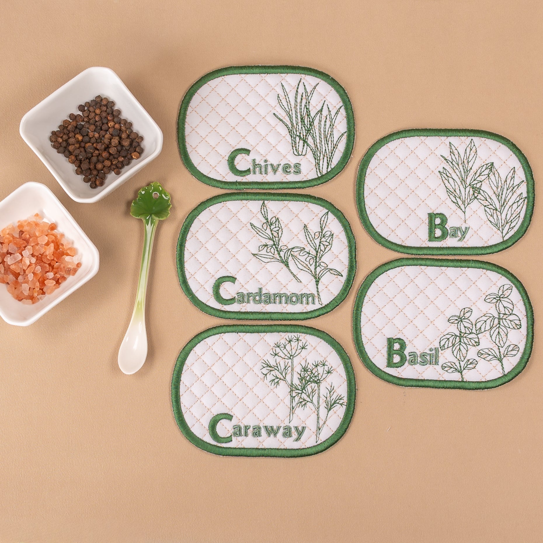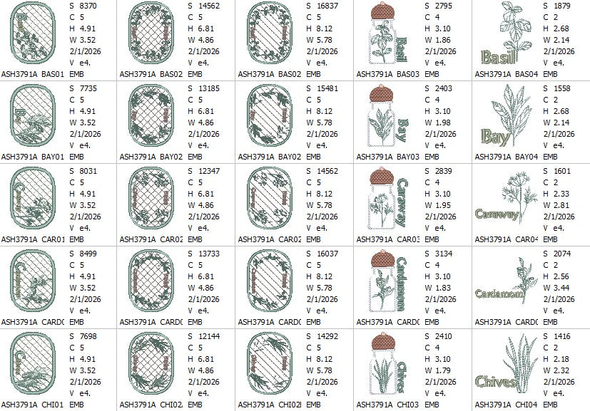 Bring cozy farmhouse elegance to your kitchen projects with these exquisitely herb designs—Chives, Bay, Cardamom, Basil, and Caraway—that capture the charm of a country garden. With versatile design options including mug rugs, continuous borders, corners, and embellishments for placemats, napkins, and tablecloths, the possibilities are endless. Each herb can be stitched with or without applique to suit your style.