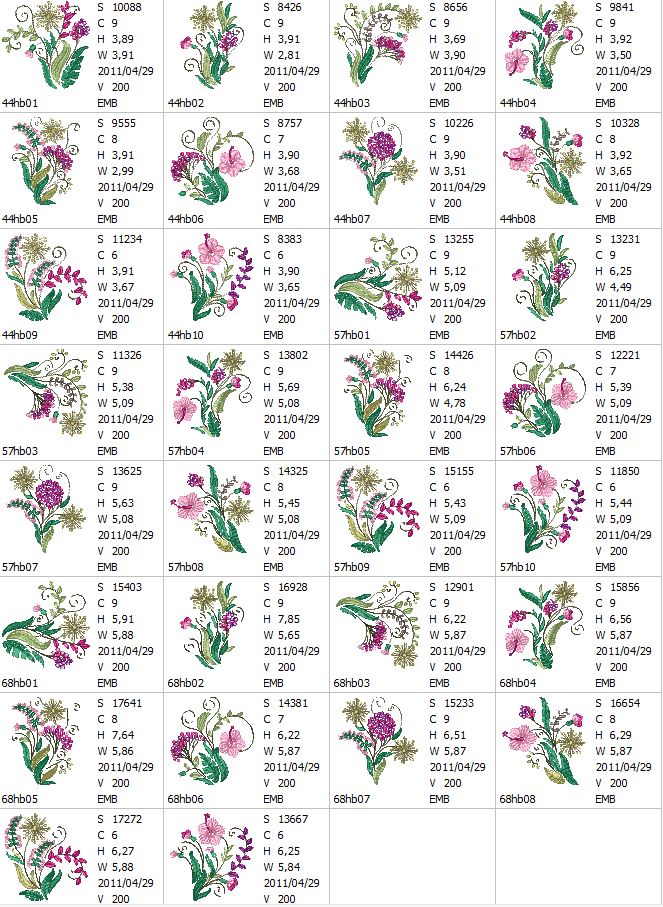 You receive:30 Machine Embroidery Designs (10 unique designs in 3 hoop sizes)