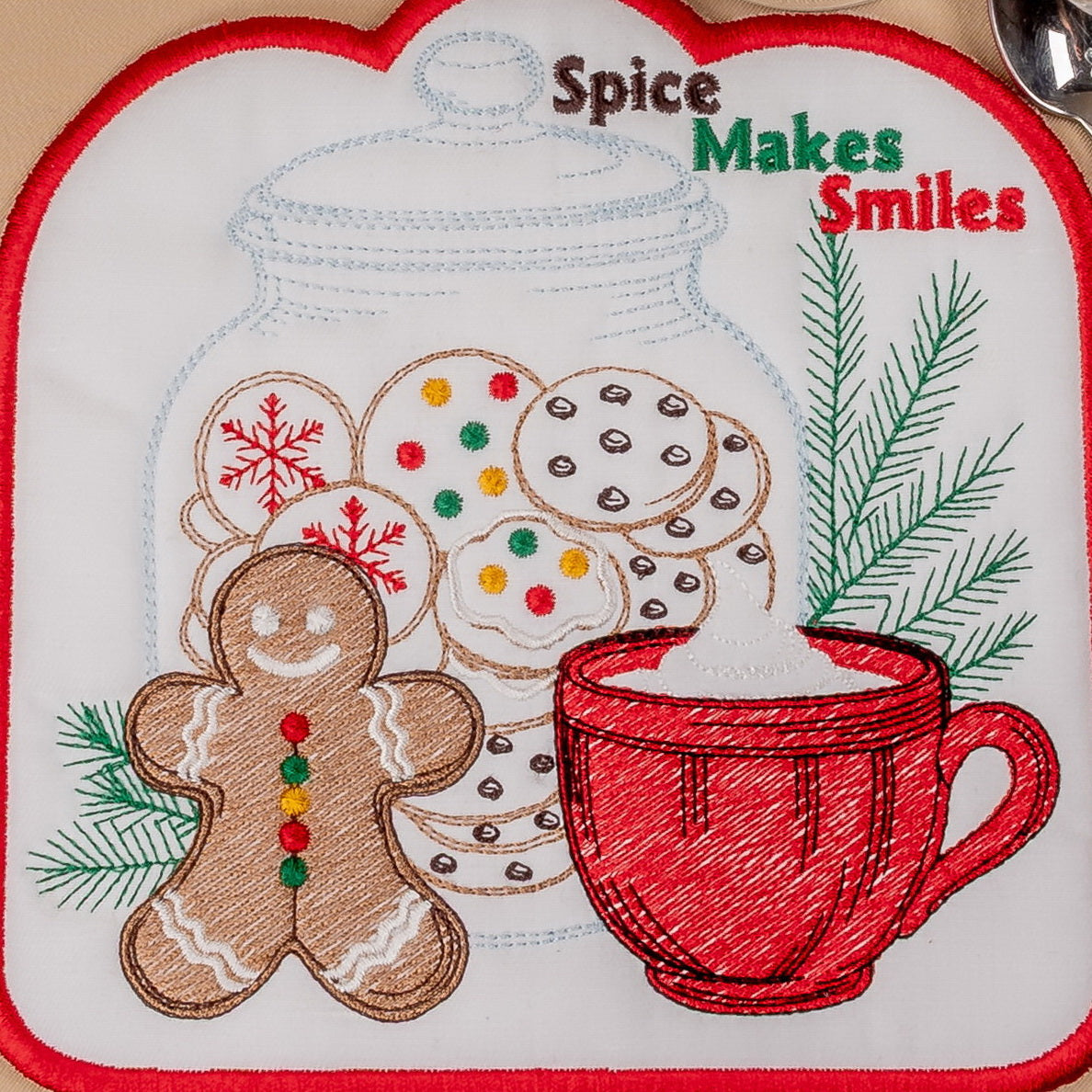 A cookie jar that's always full (in theory), a steaming cup of coffee, and a gingerbread man who can't run away. This delightful design captures the joy of simple pleasures. Perfect for kitchen towels, aprons, pillows, and gifts that say a little spice and good coffee make everything better.