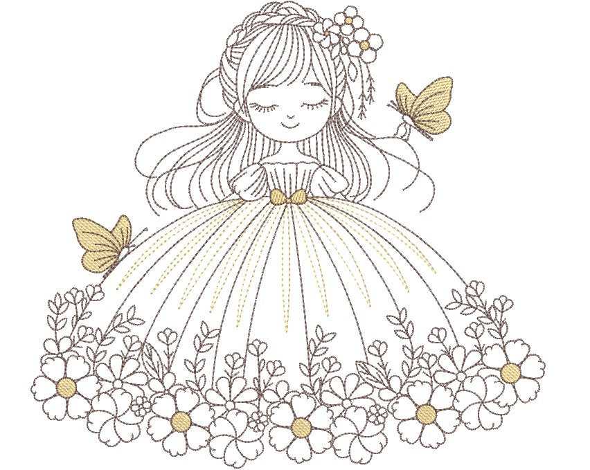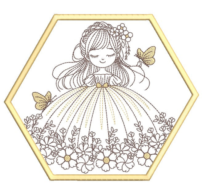 Meet Spring Child, a charming addition to our Timeless Moments range. This sweet little girl twirls in a beautiful ballgown adorned with big blooming flowers, while delicate butterflies dance through her long flowing hair and across her dress—capturing the wonder of springtime childhood.